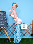 Saucy blonde enjoys a naughty day at the races.